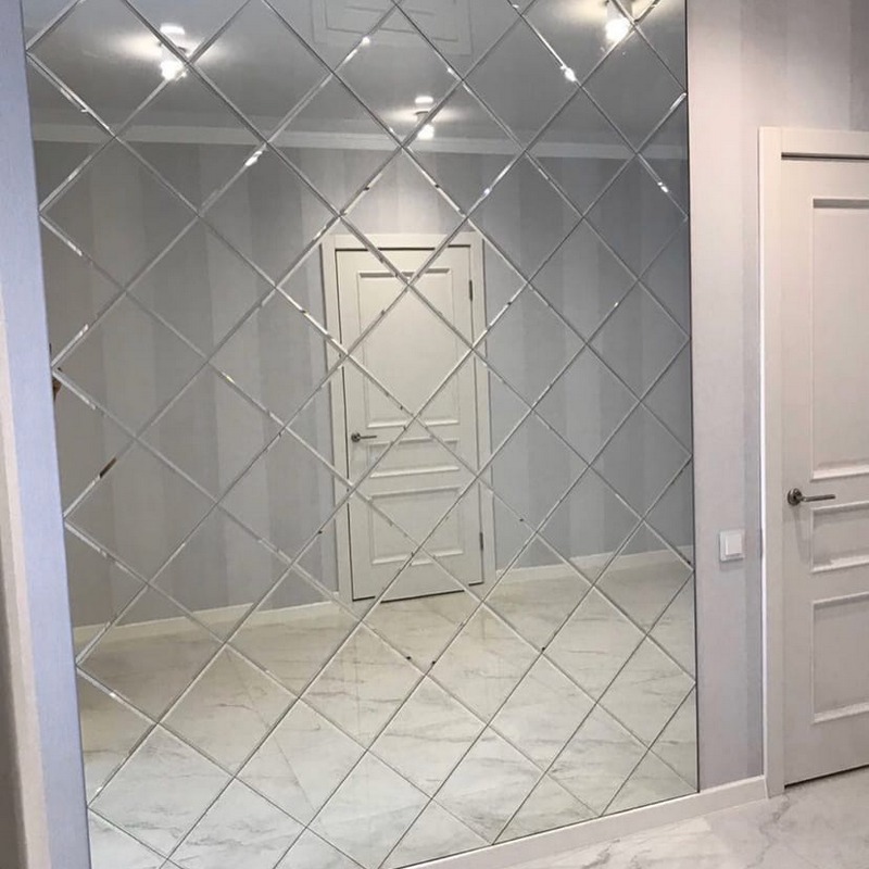 Использована зеркальная плитка "вытянутый ромб" с фацетом.