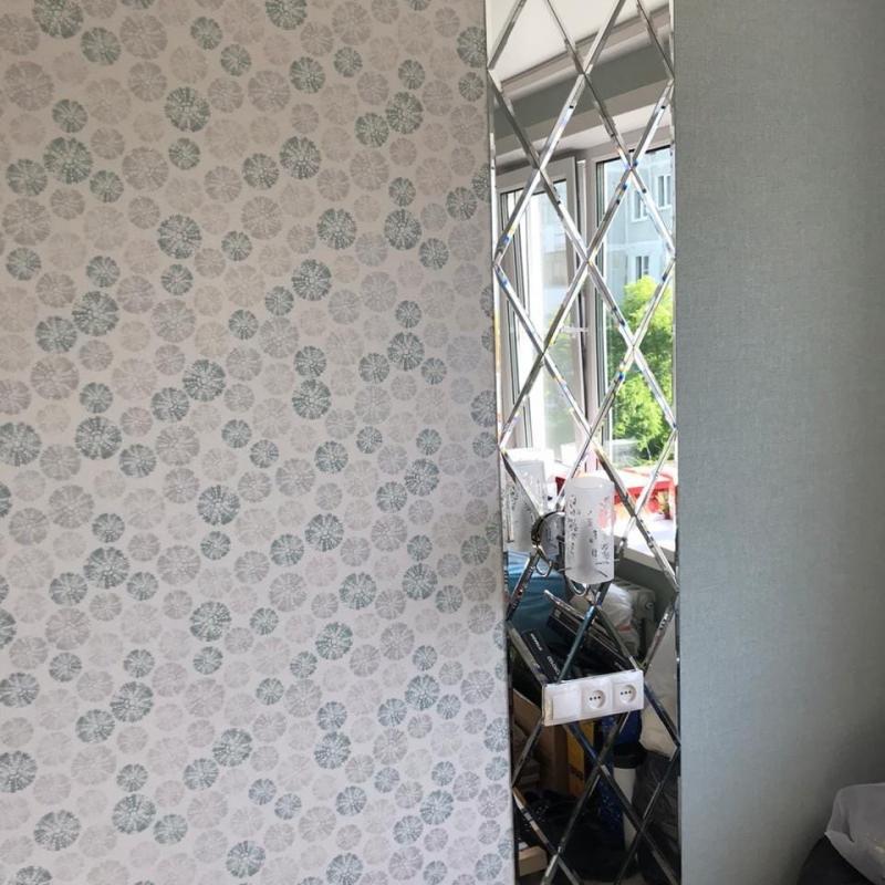 Использовалась серебристая зеркальная плитка формы "вытянутый ромб".