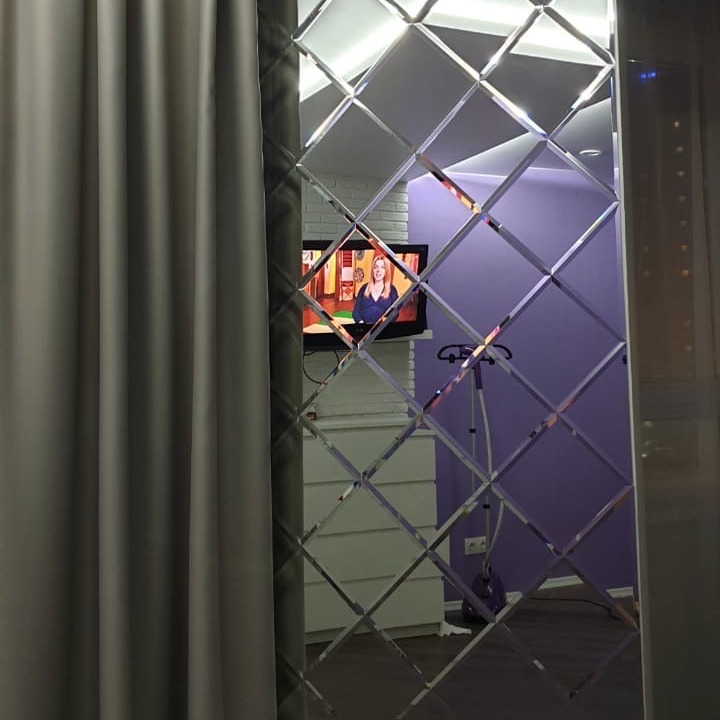 Переделывать накладно, а вот повесить на одну из стен панно из зеркальной плитки – самое то! Сразу и света добавилось, и интерьер повеселел, потому что блики от фацетных граней повышают настроение по умолчанию.